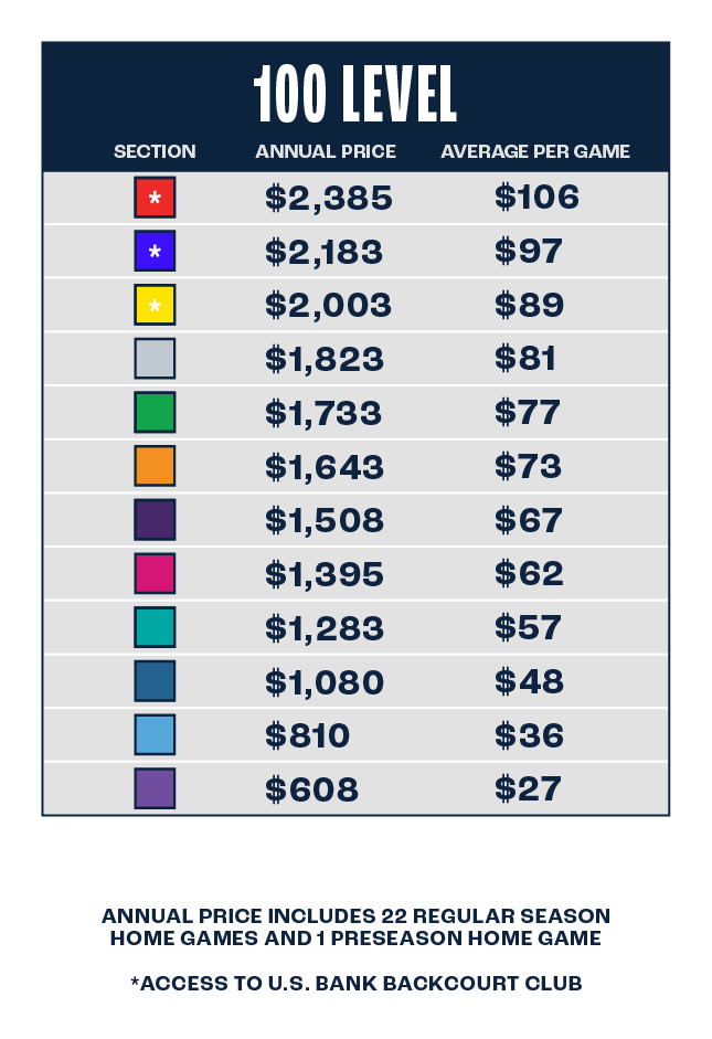 Annual Price Includes 22 regular season home games and 1 preseason home game.